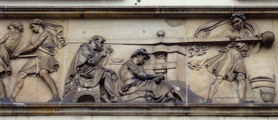 Die Aufbewahrung der von der Königlichen Münze am Werderschen Markt stammenden, im Besitz der Nationalgalerie befindlichen Sandsteinplatten in der von Fledermäusen bevölkerten Halle sei nicht mehr zu verantworten, sagte Lindemann. Architekt des klassizistischen Münzgebäudes war Heinrich Gentz, der Sohn des Breslauer Münzmeisters beziehungsweise Generalmünzdirektors in Berlin Johann Friedrich Gentz. Das 36 Meter lange Sandsteinrelief an drei Seiten der Fassade war ursprünglich bronziert und symbolisierte die dem Haus übertragenen Aufgaben. Dargestellt sind das Schürfen "roher" Metalle und ihre Bearbeitung, die Beschäftigung mit Metallen, das Schmelzen, Strecken (auf einer Walze) und Prägen (auf einer Spindelpresse, dem damals wichtigsten Prägegerät) und schließlich das Wiegen und Prüfen der fertigen Münze. Außerdem wird gezeigt, wie der Wohlstand die Künste herbeilockt. Weitere Reliefplatten schildern die Segnungen des Land- und Wasserbaues und wie mit Hilfe von Geld dem Wüten der Naturgewalten Einhalt geboten werden kann. Entwürfe für das Relief befinden sich in der Sammlung der Zeichnungen der Staatlichen Museen zu Berlin und im Märkischen Museum der Stiftung Stadtmuseum Berlin.