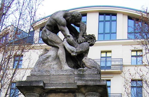 Es bedurfte erheblicher Anstrengungen und dauerte einige Jahre, bis 1910 das von dem Bildhauer Fritz Klimsch für den Karlplatz unweit der Charité geschaffene Denkmal zur Erinnerung an den Arzt, Politiker und Prähistoriker Rudolf Virchow enthüllt werden konnte. Wegen einer seiner ungewöhnlichen, damals als avantgardistisch aufgefassten Form verdient das Monument besondere Aufmerksamkeit. Auf hohem säulenbestückten Sockel aus Kalkstein ringt ein nackter, muskelbepackter Mann mit einer Sphinx, dem Symbol der Krankheit. Dieses gräuliche Mischwesen aus Mensch und Tier wehrt sich heftig, doch hat es angesichts der Kraft des Menschen keine Chance. Indem der Bildhauer diese Botschaft vermittelt, schuf er das erste Denkmal, das auf einen stehenden oder sitzenden Mediziner im üblich langen Gelehrtenmantel verzichtet. Dabei handelte Klimsch auch im Sinne von Virchow, der auf vordergründige Ehrungen keinen Wert legte. Der berühmte Mediziner ist trotzdem auf dem Denkmal präsent - mit seinem marmornen Kopfrelief auf der Vorderseite und einer szenischen Darstellung auf der Rückseite, die ihn im Kreise seiner Kollegen bei der Sektion eines Toten zeigt. Die vierzeilige Inschrift darauf enthält die Widmung: "Dem großen Forscher seine Schüler. Ihrem Ehrenbürger die Stadt Berlin".