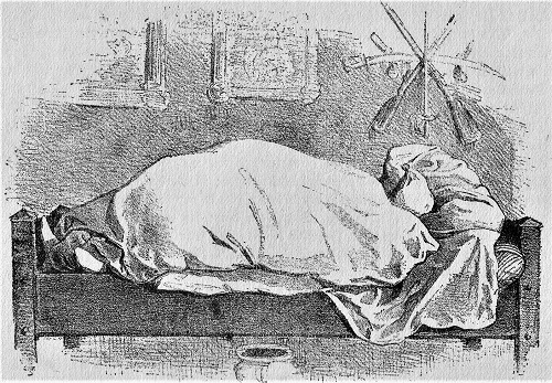 In dem Gedicht "Der Tod des deutschen Michels" gibt Glaßbrenner bekannt: "Der deutsche Michel war ein Mann, / Kein Fürst ihn besser wünschen kann; / Bei Polizei und dem Gendarm / Fühlt er sich sicher, wohl und warm." Und so beschreibt das Gedicht von Vers zu Vers, wie der Deutsche Michel die Republik für ein großes Unglück hält und sich angesichts der Revolution hinter seinem Sessel und in seinem Bett verkriecht. Für ihn sind die Zeiten viel zu groß, und so sinkt er dahin und die Nachtmütze fällt ihm vom Kopf. "Der deutsche Michel hingestreckt, / Ward von Studenten zugedeckt / Mit einem Sarge schwarz gold rot, /Denn nunmehr war er mausetot. / Doch wir verzagen nimmermehr, / Denn eines tröstet uns gar sehr; / Sein edler Geist, wenn auch schon dort, / Lebt unter uns schon immer fort."