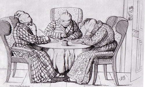Um das Jahr 1910 wurde der Begriff Biedermeier für einen Stil geprägt, der für die Zeit des Vormärz, also die Zeit vor der Revolution im März 1848, bestimmend war. Das Wort hatte ursprünglich einen zweifelhaften, ja lächerlichen Beigeschmack und wurde mit Spießern, Leisetretern, Angsthasen und Muckern in Verbindung gebracht, die es sich in ihrer gemütlichen Häuslichkeit bequem machen und sich vor gesellschaftlichen Umbrüchen fürchten. Spott und Hohn wurden über den ängstlichen Hausvater mit Pantoffel und Schlafmütze ausgegossen. "Biedermanns Abendgemütlichkeit" und "Bummelmeiers Klage" waren aus den Witzblättern nicht wegzudenken. Der Dichter Ludwig Eichrodt zog aus beiden Namen sein Pseudonym "Biedermeier" zusammen.