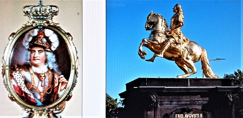 Der Sachse hat die Blamage gegenüber seinen Untertanen durch eine Folge glänzender Feste und teurer Staatsbauten zu kaschieren versucht. Seine Entstehung verdankt der Dresdner Zwinger dem Besuch des dänischen Königs 1709. Um den Festplatz für Turniere, Maskeraden, Tierjagden und Feuerwerk wurden hölzerne Bauten errichtet. August der Starke ließ dieses eigentlich als Vorhof für einen nie verwirklichten Schlossneubau gedachte Provisorium nur wenige Jahre stehen und beauftragte Pöppelmann mit dem Bau von Steingebäude mit reichem figürlichem Sandsteinschmuck. Der Kurfürst und König hätte für sich und seine Familie nur allzu gern den römisch-deutschen Kaiserthron gesichert. Obwohl sein Sohn Friedrich August (II.) 1719 die Kaisertochter Maria Josepha heiratete, wurde dieses ehrgeizige Ziel nicht erreicht. Für die Hochzeitsfeierlichkeiten bot der Zwinger eine prächtige Kulisse.