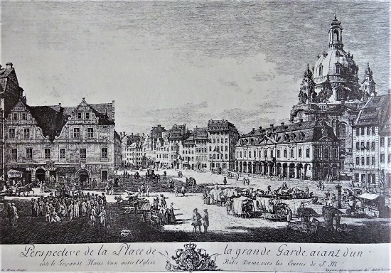 Der Kupferstich zeigt Dresden und die mächtige Kuppel der Frauenkirche im 18. Jahrhundert. (Fotos/Repros: Caspar)