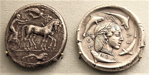 Während seiner Reise nach Italien vom September 1786 und Mai 1788 kam der junge Goethe unter anderem mit antiken Münzen in Berührung und war gleich Feuer und Flamme. Nachdem er sie in Palermo gesehen hatte, notierte er enthusiastisch: "Welch ein Gewinn, wenn man auch nur vorläufig übersieht, wie die alte Welt mit Städten übersäet war, deren kleinste, wo nicht eine ganze Reihe der Kunstgeschichte, wenigstens doch einige Epochen derselben uns in köstlichen Münzen hinterließ. Aus diesen Schubkasten lacht uns ein unendlicher Frühling von Blüten und Früchten der Kunst, eines in höherem Sinne geführten Lebensgewerbes und was nicht alles mehr hervor. Der Glanz sicilischer Städte, jetzt verdunkelt, glänzt aus diesen geformten Metallen wieder frisch hervor". Goethe fügte hinzu, leider hätten wir, womit er sich wohl selber meint, in unserer Jugend nur die Familienmünzen besessen, die nichts sagen, und die Kaisermünzen, welche dasselbe Profil bis zum Überdruss wiederholen und Bilder von Herrschern sind, die eben nicht zu den Musterbildern der Menschheit gehören. "Sicilien und Neugriechenland lässt mich wieder ein frisches Leben hoffen".