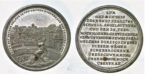 Auf der Nürnberger Medaille mit Kupferstift wird der verheerenden Folgen eines Hochwassers im Februar 1784 gedacht. (Fotos: Caspar)