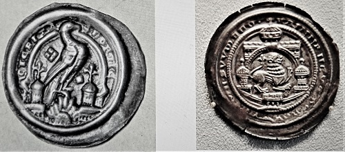 Der Falke ist auf dem Brakteaten das redende Wappen der der Herren von Falkenstein. Der Brakteat daneben zeigt einen Löwen in einer romanischen Architekturkulisse und spricht in der Ich-Form zum Betrachter.
