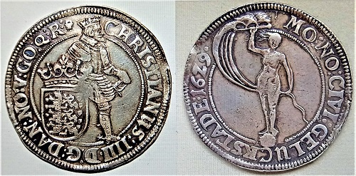 Der Glückstädter Taler von 1629 verwendet die auf einer Kugel schwebende Glücksgöttin Fortuna als redendes Wappen.