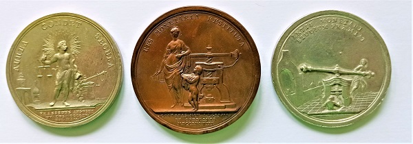 Die mit dem römisch-deutschen Kaiser Franz I. Stephan vermählte Kaiserin und Königin Maria Theresia kümmerte sich intensiv um das Geld- und Münzwesen ihrer Länder. Medaillen anlässlich ihrer Besuche in Prägeanstalten und zur Belohnung der dort tätigen Personen verbinden ihr Porträt mit Arbeitern, die an Spindelpressen tätig sind und allegorischen Figuren.