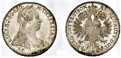 Die bekannten und beliebten Maria-Theresien-Taler mit der Jahreszahl 1780 hatten Vorläufer in Gestalt der Madonnentaler und anderer Großsilbermünzen, doch es fällt auf, dass unter Franz I. Stephan und Maria Theresia kaum Gedenkmünzen geprägt wurden. Wir kennen das auch von anderen Monarchien wie Frankreich, England, Russland oder Preußen, wo man auf Gedenkmünzen verzichtete und statt ihrer zahllose Medaillen ausgegeben hat. Anfangs in Günzburg, Wien und Prag geprägt, konnten sich die Maria-Theresien-Taler wegen ihrer gleich bleibenden Qualität und ihres guten Aussehens gegen starke Konkurrenten über lange Zeit als Handelsmünze für den Orient und darüber hinaus behaupten. Die mit dem Sterbejahr 1780 der Kaiserin versehene Silbermünze war bis 1858 in Österreich offizielles Zahlungsmittel, klingelte aber auch lange danach in den Kassen und Geldbeuteln des Vielvölkerstaates.