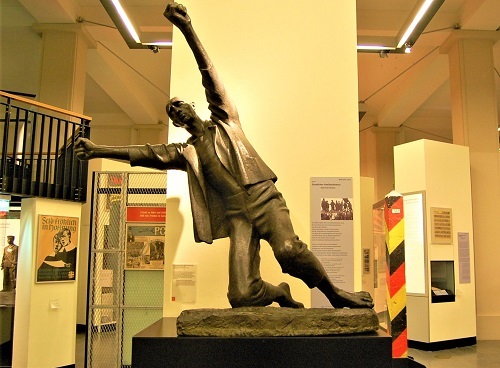 Weiter geht es zum fürstlichen Absolutismus in Brandenburg-Preußen, in die Zeit also, in der auch das Zeughaus erbaut wurde, zur Aufklärung und französischen Revolution von 1789, die erhebliche Wirkungen für das in viele Fürstentümer zersplitterte Römisch-deutsche Reich hatte. Weitere Abschnitte in der Ausstellung sind der Industrialisierung, der Revolution von 1848/9, die ihre demokratischen Ziele nicht erreicht hat, den Einigungskriegen zwischen 1864 und 1871 und das 1871 gegründete Kaiserreich gewidmet, das sich vor bald 150 Jahren im Zeughaus eine schon lange nicht mehr bestehende Ruhmeshalle schuf. Die Schau in der oberen Etage geht zu Ende mit dem Ersten Weltkrieg und der Abschaffung der Monarchie im Jahr 1918 und führt weiter ins Erdgeschoß und zeigt, was sich in der Weimarer Republik, in der Zeit des Nationalsozialismus und dem Zweiten Weltkrieg sowie in den 60 Jahren danach ereignet hat.