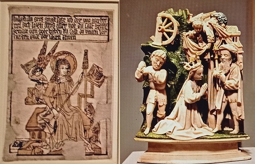 Durch Gegenüberstellung der Kunstgattungen und Handschriften will die einzigartige, nach der coronabedingten Schließung der Berliner Museen nun wieder zugängliche Ausstellung das Aufblühen der bildenden Kunst und der Buchdruckerei als neues Medium an der Schwelle zur Neuzeit in ihrer bunten Vielfalt und breit angelegten Thematik erlebbar machen. Die meisten Werke in der gut besuchten Ausstellung befassen sich mit religiösen Themen. Ganze Altäre und Tafeln von ihnen schildern oft auf drastische, in die Gegenwart übertragene Weise das Leben und Leiden Jesu Christi und von heiligen Männern und Frauen. Für Kirchen und Klöster, aber auch weltliche und geistliche Fürsten sowie reiche Bürger waren einzelne, nicht immer mit dem Namen bekannte Künstler und ihre Werkstätten tätig. Sie schufen für die Menschen ihrer Zeit, die in der Regel weder lesen noch schreiben konnten, eine Art Bilderbibel, so wie man Szenen daraus auch auf Glasfenstern der Kirchen darstellte.