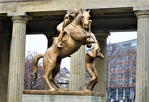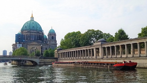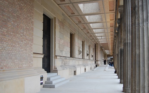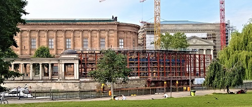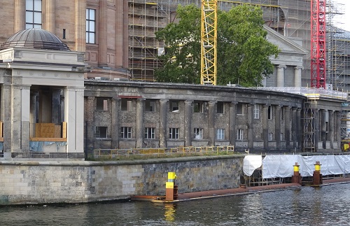 Die Wiederherstellung des originalen Zustands des klassizistischen Säulengangs aus dem 19. Jahrhundert entlang der Spree bekommt die Berliner Museumsinsel ihren letzten Schliff. Im Zuge der Baumaßnahmen mussten die Kolonnaden eingehaust werden, außerdem wurde eine zum Teil zwei Meter über die Ufermauer reichende Arbeitsfläche gebaut. Der nördliche Abschnitt der Kolonnaden war 1911 zugebaut worden, um neue Räumlichkeiten für Mitarbeiter der damals Königlichen, ab 1918 Staatlichen Museen zu schaffen. Bis zu den aktuell noch laufenden Rekonstruktionsmaßnahmen wurden die Räume unter anderem als Restaurierungswerkstatt für Skulpturen im Besitz der Alten Nationalgalerie genutzt. Sie erhielt inzwischen ein neues Domizil im Bode-Museum. Verschwunden sind die zweigeschossigen Einbauten. Wie die gereinigten und restaurierten Säulen zur Geltung kommen, sieht man bereits an der Seite zum Dom am Lustgarten und teilweise auch entlang der Spree. Die Bauidee für den Kolonnadenhof geht auf Karl Friedrich Schinkel zurück, den Architekten des Alten Museums auf der Museumsinsel. Sein in der Alten Nationalgalerie ausgestelltes Gemälde "Blick in Griechenlands Blüte" (Nationalgalerie) zeigt ein ähnlich gestaltetes Konzept.