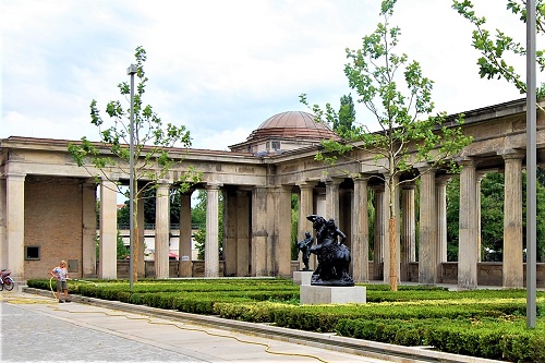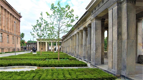 Die Kolonnaden der Museumsinsel wurden nach einem Entwurf von Friedrich August Stüler, des Architekten des Neuen Museums und der Alten Nationalgalerie, zwischen 1853 und 1878 errichtet. Bei der Wiederherstellung des klassizistischen Umgangs haben die Bauleute originale Fragmente, die in Trümmern und Gewölben wiederentdeckt worden waren, verwendet, so dass das Erscheinungsbild weitgehend dem der Erbauungszeit entspricht. Wie die gesamte Museumsinsel gehört auch der als Gartendenkmal eingetragene Innenhof seit 1999 zum Unesco-Weltkulturerbe. Diese Ehrung erlegt der Stiftung Preußischer Kulturbesitz und ihren Staatlichen Museen die Pflicht auf, besonders sorgfältig mit der historischen Substanz umzugehen und sie nach allen Regeln der Denkmalpflege zu erhalten. Das nach alten Plänen wiederhergestellte Areal stellt einen spürbaren Zugewinn an Erlebnisqualität und wird von vielen Freunden der Museumsinsel in der warmen Jahreszeit auch dann aufgesucht, wenn die Häuser mit ihren hochkarätigen Gemälde-, Skulpturen- und archäologischen Sammlungen geschlossen sind.