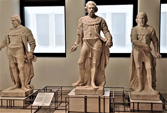 An einer anderen Stelle im Treppenhaus des Humboldt Forums halten die Kurfürsten Joachim II., Johann Georg und Johann Sigismund Wache.