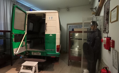 Das Museum wenige Schritte vom Foyer entfernt belegt an erschreckenden Exponaten, Fotos und Dokumenten, wie sehr die Berliner Polizei während der NS-Zeit in Verbrechen gegen die Menschlichkeit und Kriegsverbrechen beteiligt war, wie die so genannten Einsatzgruppen massenweise Juden und andere "Fremdvölkische" ermordeten und wie die meisten ihrer Angehörigem dem Regime bis zum grausigen Ende die Treue hielten. Gezeigt wird auch, wie Polizisten per Anweisung und Schulungen mit NS-Ideologie infiltriert wurden und wie das Regime eifrig das Bild von der Polizei als "Freund und Helfer" malte und wie diese Sichtweise nach 1945 auf beiden Seiten der deutsch-deutschen Grenze weiter gepflegt wurde. Dass vieles in dieser Hinsicht schief lief und die Bevölkerung früher und leider auch heute allen Grund hat, den Ordnungshütern zwar mit Respekt, Vorsicht und Vertrauen, aber auch mit Misstrauen zu begegnen, muss man sich beim Anblick der vielen Exponate hinzu denken. Wir tun das im Wissen, dass es immer wieder zu polizeilichen Übergriffen kam und kommt und Bestrafungen und Entlassungen von Ordnungshütern nötig sind.