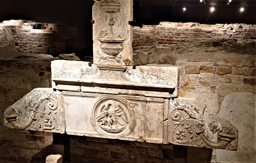Im Schlosskeller sind diese stattlichen Relikte sparsam beleuchtet, man kann sich in dem Raum zwischen den Mauern durchaus verlaufen. In Vitrinen liegen Reste von alten Ofenkacheln und bunt bemalten Porzellanen laus, dazu auch Grabbeigaben sowie Haushaltsgegenstände und sogar alte Zapfhähne aus Metall. Grafiken zeigen, wie es in den unterirdischen Stuben der Schlosswache und ihres Kommandanten zuging, und auch sonst helfen kleine Bilder zu verstehen, was in den Höfen und den Katakomben des Schlosses vor sich ging. Ein verrosteter Ventilator erinnert daran, dass in der Kaiserzeit eine moderne Heizungsanlage eingebaut wurde. Über der Treppe, die in die Katakomben führt, sind Baumstämme installiert, die vor ewigen Zeiten in den schwankenden Boden auf der Berliner Schlossinsel gerammt wurden, um der Hohenzollernresidenz Halt zu gewähren.