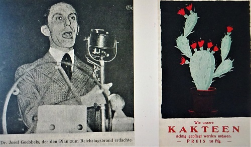 Im Inneren des bunten Kakteenhefts steckt die abgedruckte KPD-Resolution von 1935 "Der neue Weg zum gemeinsamen Kampf aller Werktätigen für den Sturz der Hitlerdiktatur" zur Schaffung einer breiten Volksfront der Arbeiterklasse gegen das NS-Regime. So wurde überall im Deutschen Reich plakatiert, wer nach dem Willen der Nazis Schuld am Reichstagsbrand und überhaupt am Chaos im Land hat und dass nur sie allein Retter aus der Not sind. (Fotos/Repros: Caspar)
