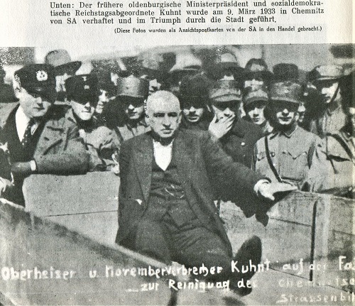 Antifaschisten und Emigranten haben 1933 das "Braunbuch über Reichstagsbrand und Hitlerterror" veröffentlicht. Bis kurz vor der Drucklegung mit immer neuen Enthüllungen und Augenzeugenberichten über den Terror und die Morde im Reich des Adolf Hitler sowie Auszügen aus der Presse, Erklärungen von Politikern aller Seiten und vielen Bildern von verfolgten geschundenen Menschen versehen, erschien die 383seitige Dokumentation aus Gründen der Konspiration unter der Bezeichnung "Universum Bücherei der Genossenschaft für Verlag und Vertrieb neuzeitlicher Literatur" in Basel. Im Vorwort betonen Verfasser und Verlag, es handle sich um ein deutsches Buch. "Deutsche haben es erlebt und erlitten. Deutsche haben es geschrieben. Es ist ein internationales Buch. Antifaschisten in England und Frankreich, in Holland und Amerika haben die Herausgabe des Buches unterstützt". Es wird betont, dass Albert Einstein und Lord Marley, ein einflussreicher Labourabgeordneter, und das von ihnen geführte Weltkomitee für die Opfer des Hitler-Faschismus diesem Buch ihre Hilfe geliehen haben. "Internationale Schriftsteller von hohem Rang haben durch Beiträge die Solidarität mit den Opfern des Hitler-Terrors und mit dem Kampf gegen den Hitler-Faschismus dokumentiert."