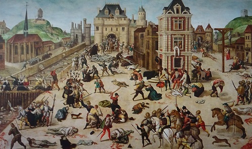 Schauriger Höhepunkt der Auseinandersetzungen zwischen ihnen und den das Land dominierenden Katholiken war die von König Karl IX. insgeheim befohlene Bartholomäusnacht, bekannt auch als Pariser Bluthochzeit. Otto Zoff kann sich in seinem Buch auf zahlreiche Augenzeugenberichte und Klagen der Überlebenden stützen, und so bekommen die Leser ein sehr anschauliches Bild davon, was sich in der Nacht zum 25. August 1572, dem Bartholomäustag, in Paris und anderenorts, von langer Hand vorbereitet, zugetragen hat. Während der Hochzeit Königs Heinrichs III. von Navarra, des späteren französischen Königs Heinrich IV., und Margarete von Valois wurden in Paris und im Lande draußen mehrere tausend Hugenotten mit Feuer, Schwert und Strick ermordet. Unter den Toten war auch Admiral Coligny, ihr militärischer Anführer. Bis heute hält sich das Gerücht, die aus dem florentinischen Herrscherhaus Medici stammende, mit Papst Clemens VII. (Giulio de Medici) verwandte Königinmutter Katharina habe Karl IX., ihren Sohn, zu dem Massaker überredet. Mutter und Sohn taten unwissend und wuschen ihre Hände in Unschuld.