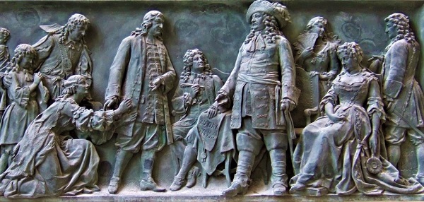 Die Aufnahme der Fremden geschah nicht nur aus Mitleid, sondern hatte auch recht handfeste ökonomische Gründe, weil sie, mit vielen Vergünstigungen bedacht, der Wirtschaft auf die Sprünge helfen und auch das kulturelle Niveau verbessern sollten. Zahlreiche Refugiés erhielten einträgliche und einflussreiche Posten am Hof, in der Verwaltung und der Armee, was von den Einheimischen nicht immer gern gesehen wurde. Sie übernahmen von den Zugewanderten feine Sitten und Gebräuche, und auch die eher karge märkische Küche profitierte von ihnen. Viele französische Worte fanden Eingang in die Umgangssprache. Wenn wir heute blümerant (bleu mourant, oder sterbendes Blau), Buddel (bouteille), Budike (boutique), forsch (avec force, mit Kraft), Kinkerlitzchen (quincailleries), Muckefuck (moque faux, falscher Kaffe) oder aus der Lamäng (la main, aus der Hand, routiniert) sagen, dann weiß vielleicht der eine oder andere, dass diese Worte französischen Ursprungs sind.