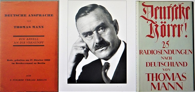 Der Literaturnobelpreisträger Thomas Mann besaß und besitzt in der deutschen und internationalen Kulturszene einen hervorragenden Namen. Das hinderte die 1933 an die Macht gelangten Nationalsozialisten nicht, ihn auszubürgern und seine Werke auf den Index zu setzen. Erst im schweizerischen Exil, dann in den USA lebend, war der aus einer wohlhabenden Lübecker Patrizierfamilie stammende Schriftsteller an den Vorgängen im so genannten Dritten Reich brennend interessiert. Im Herbst 1940 fragte ihn der britische Sender BBC, ob er zu seinen deutschen Landsleuten sprechen und die Kriegsereignisse sowie die Nazi-Verbrechen kommentieren würde. Mann nahm den Auftrag ohne zu zögern an. Seine monatlichen Ansprachen wurden anfangs nach London gekabelt und dort von einem Sprecher verlesen. Um aber ihre Authentizität zu unterstreichen, hat der Autor sie schon bald in den USA auf Schallplatten gesprochen. Diese Tonaufnahmen wurden mit dem Flugzeug nach England gebracht und von dort ausgestrahlt. Die Ansprachen reichen von 1940 bis 1945. Sie wurden 1972 in der 900. Folge der Insel-Bücherei Leipzig als Lizenzausgabe des S. Fischer Verlags Frankfurt am Main mit einem Nachwort von Eike Middell publiziert und sind auch in anderen Ausgaben zu finden.