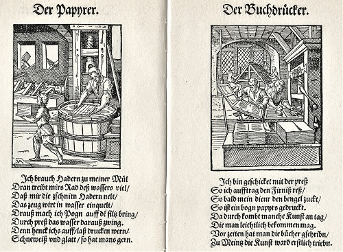 Bald nach der Erfindung des Buchdrucks wurden nicht nur Bibeln, sondern auch Einblattdrucke mit und ohne Holzschnitt-Illustrationen sowie so genannte Volksbücher und andere Werke hergestellt und in Umlauf gebracht. In vielen Städten mit und ohne Universitäten entstanden Druckereien und Verlage, mit denen sich ein ganz neuer Wirtschaftszweig entwickelte. Der Religionsstreit vor und nach der Lutherschen Reformation von 1517 und die sich anschließenden sozialen Auseinandersetzungen wurden wesentlich durch schnell auf den Markt geworfene und weit verbreitete Kampfschriften geprägt und angeheizt.