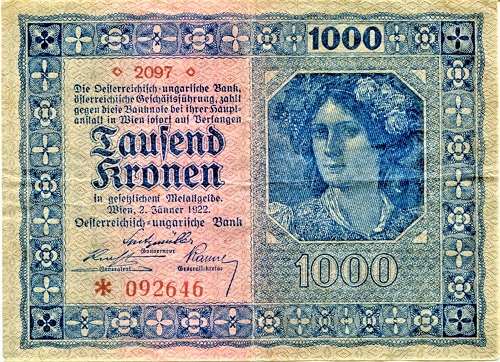 Die Inflation nach dem Ersten Weltkrieg machte in Deutschland und Österreich Millionen Menschen zu Bettlern, denn mit den Bergen gedruckten Papiergeldes konnte man immer weniger anfangen. Während Banknoten mit immer höheren Zahlen ausgegeben wurden, schritt die Verelendung der Bevölkerung voran und erfasste langsam auch die Mittelschichten. Aus dem Geldverkehr verschwunden war das gute alte Gold- und Silbergeld, statt dessen prägten und druckten Staat, Kommunen und Unternehmen massenhaft Notgeldscheine und Ersatzmünzen, um den Bedarf an Klein- und Wechselgeld zu befriedigen. Für Lebensmittel, Kleidung und andere Dinge des täglichen Bedarfs musste man weitaus mehr bezahlen als in der Vorkriegszeit, bekam aber nicht in gleichem Maße Lohn, Gehalt und Renten. Wer es sich leisten konnte, machte Sachwerte zu ausländischen Devisen und raffte Grundstücke als eine Art Betongold, wie wir heute sagen würden, zusammen. Noch nie hatte man auf österreichischen Banknoten solche Zahlen gelesen - erst 5000, dann 50 000, 100 000, 500 000 Kronen und höhere Werte.