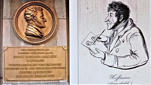 Dass E. T. A. Hoffmann ebenso begabtes wie umstrittenes Multitalent war, als Jurist, Kapellmeister und Musikdirektor in verschiedenen Städten gearbeitet hat und unter seinem Brotberuf litt, nämlich am Berliner Kammergericht neben anderen Dingen auch mit preußischen Zensur-Angelegenheiten befasst zu sein, muss man sich beim Anblick des Medaillons und des Denkmals Büste hinzudenken. Hilfreich ist bei der Erkundung von Leben und Werk des Berliner Flaneurs das Buch von Michael Bienert "E. T. A. Hoffmanns Berlin. Literarische Schauplätze", das 2015 im Verlag für Berlin-Brandenburg erschien, 176 Seiten hat und großzügig mit meist farbigen Abbildungen aus dem frühen 19. Jahrhundert und von heute ausgestattet ist (24,99 Euro, ISBN 978-3-945256-30-5). Ein kleiner Abschnitt befasst sich mit Hoffmanns Arbeit am Berliner Kammergericht. Dort hatte Preußens König Friedrich Wilhelm III. als letzte Instanz ein Ober-Zensur-Kollegium eingerichtet, das über Beschwerden wegen Unterdrückung der Meinungs- und künstlerischen Freiheit zu befinden hatte, aber auch die Ausführung der Zensurgesetze überwachen musste.