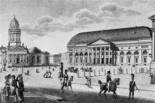 Der Gendarmenmarkt war lange Zeit ein bescheidener Stadtraum, auf dem König Friedrich I. ab 1701 die Französische und die Deutsche Kirche erbauen ließ. Unter Friedrich dem Großen wurden zwischen 1780 bis 1785 riesige Kuppeltürme mit vergoldeten Figuren obenauf angefügt, was den Raum sichtbar aufgewertete und ihm Würde und Maß gab. Zwischen beiden Gotteshäusern stand das Französische Theater, das 1802 abbrannte und von Karl Gotthard Langhans, dem Erbauer des Brandenburger Tors, durch ein neues Nationaltheater ersetzt wurde. Dieser "Koffer" genannte Bau brannte 1817 bei Proben zu Schillers "Räubern" ab. Karl Friedrich Schinkel errichtete auf Weisung König Friedrich Wilhelms III. von 1818 bis 1821 einen klassizistischen Neubau. Im Zweiten Weltkrieg zerstört, erlebte das Schauspielhaus, oder wie man heute sagt, das Konzerthaus Berlin, bis 1984 seine Wiedergeburt. Dabei wurde der Außenbau weitgehend original, das Innere aber nach historischen Vorbildern neu mit neoklassizistischem Zierrat gestaltet. Wer eine hervorragende Akustik genießen und Büsten berühmter Musiker betrachten will, ist im Konzerthaus richtig.