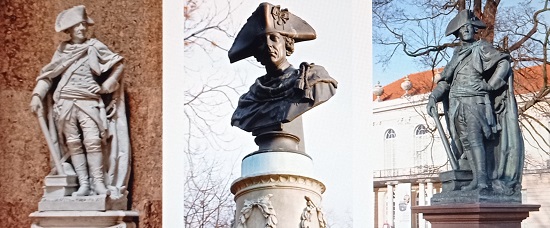 Das Bronzemonument überstand, von einem Steinmantel geschützt, den Zweiten Weltkrieg. Ihm blieb in den frühen 1950er Jahren erspart, wie andere Berliner Herrscher- und Generalsfiguren im Schmelztiegel zu landen. In einen entfernten Winkel des Parks von Sanssouci abgeschoben und dort aufgestellt, wurde es 1980 nach Ost-Berlin zurückgeholt und am nahezu originalen Standort aufgerichtet. Die Anordnung kam vom damaligen Staats- und Parteichef Honecker, der damit eine Art Preußen-Renaissance in der DDR einläutete und mit seinem Vorgehen bei seinen Genossen in Warschau wenig Beifall fand, die es dem preußischen König verübelten, in der zweiten Hälfte des 18. Jahrhunderts das Land durch die Polnischen Teilungen zerschlagen und skrupellosen Landraub betrieben zu haben.