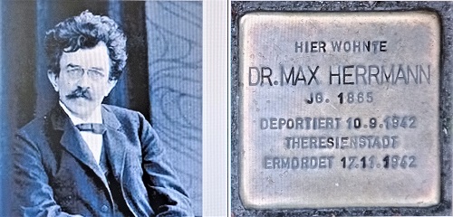 Von seiner Schülerin Ruth Mövius stammt eine bewegende Erinnerung an die Drangsalierungen durch die NS-Rassegesetze, die Herrmann erdulden musste. „Ich erinnere mich deutlich eines Tages, an dem Max Herrmann eben zu solcher Einsichtnahme in die Staatsbibliothek ging. Ja, er ‚ging‘: von der Eislebener Straße am Bahnhof Zoo bis Unter den Linden, denn die Benutzung von Bahnen aller Art war Juden verboten. Ich hatte ihn gebeten, ihn begleiten zu dürfen. Und es ist mir unvergesslich, wie wir nicht durch den Tiergarten auf kürzestem Wege gehen konnten, weil Juden Grünanlagen nicht betreten durften. Umweg um Umweg mussten wir machen, weil ihm das Überqueren gewisser Straßenzüge verboten war. Die Benutzung einer Bank an irgendeiner Straßenseite war dem mit einem Stern Gezeichneten untersagt. Und so kam er nach mehr als zweistündigem Weg völlig erschöpft in der Ausleihe an. Ich sehe ihn noch, tief ausatmend, in eines der Ledersofas sinken – wenige Sekunden später kam ein Beamter der Ausleihe auf ihn zu und erklärte dem 75jährigen, er möchte aufstehen, als Jude habe er nicht das Recht, irgendwo im Hause der Staatsbibliothek zu sitzen. Mit unnachahmlicher Hoheit und Würde erhob sich Max Herrmann und stellte sich nun an eines der Stehpulte, um dort mit eiserner Energie etwa ¾ Std. stehend zu arbeiten und dann wieder auf sinnlosen Umwegen den über zweistündigen Rückweg anzutreten.“