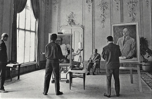 Manch ein Maler und Bildhauer verdiente Geld und einen Orden mit Porträts des aus Sachsen stammenden Übervaters Walter Ulbricht. Hier sitzt er Modell im ehemaligen Königsschloss Schönhausen in Berlin-Pankow. Nach 1971 konnte man mit Ulbrichtbildern keinen Hund mehr hinter dem Ofen hervor locken.