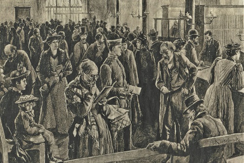 Die paar Pfennige, die von den geringen Löhnen und Renten übrig blieben, wurden zur Sparkasse gebracht. Das Publikum hier war nicht mit jenen Damen und Herr4en zu vergleichen, die die Bankenpaläste frequentierten.