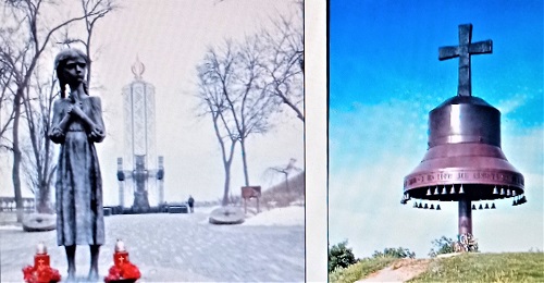 Das in Bronze gegossene Mädchen mit der Getreidegarbe in den Händen, die Glocke und andere Denkmäler erinnern in Kiew und an anderen Orten in der Ukraine daran, dass Stalin vor 90 Jahren die Bewohner der Sowjetrepublik durch die zwangsweise Kollektivierung und systematisches Aushungern in die Knie zwingen wollte.