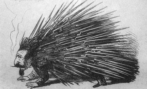 Drastisch wird Frankreichs Kaiser Napoleon III. als Igel mit Bajonetten auf dem Rücken verspottet. (Repros: Caspar)