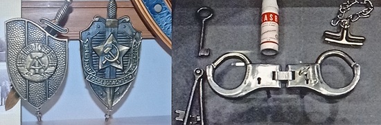 Außer Druck ausüben und Angst verbreiten, die Opposition zersetzen und Staatsfeinde hinter Gitter bringen, Republikflucht verhindern und Verstöße gegen die sozialistische Planwirtschaft unterbinden - die DDR-Staatssicherheit, die sich als Schild und Schwert der SED verstand und von dieser ihre Befehle bekam, konnte 1989 das zusammenbrechende Gebäude des zweiten deutschen Staates nicht stabilisieren und ging mit diesem unter. In der Stasigedenkstätte an der Ruschestraße sind die Embleme des MfS und des sowjetischen Geheimdienstes ausgestellt, daneben Handschellen und Schlüssel in einer Ausstellung im Stasi-Untersuchungsgefängnis Berlin-Hohenschönhausen.