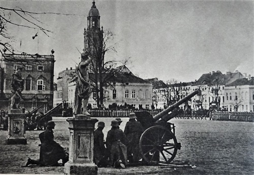 Die Reichswehr schießt am Tag von Potsdam im Lustgarten Salut, im Hintergrund die Garnisonkirche aus der Zeit des preußischen Soldatenkönigs Friedrich Wilhelm I.