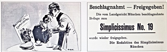 Nicht immer ließ und lässt sich das freie Wort unterdrücken, manchmal ging der Schuss auch nach hinten los. So machten in der Kaiserzeit zeitweilige Verbote des "Simplicissimus" ausgesprochen populär. Die Münchner Satirezeitschrift nahm kein Blatt vor den Mund, wenn es gegen mangelhafte Rechtstaatlichkeit und Ausbeutung, gegen Obrigkeitshörigkeit, Bigotterie, Anbetung alles Militärischen, gegen Unterdrückung der Meinungsfreiheit und die verhassten "Preußen" sowie die bornierte Adels- und Offizierskaste ging. Immer wieder passierte es, dass die Zensur einschritt und Verfahren wegen Majestätsbeleidigung und Gotteslästerung eröffnet wurden. Diese machten die Wochenzeitschrift weithin bekannt und trieben ihr neue Leser und Abonnenten zu. Dass das Blatt schon im ersten Jahrgang Gedichte von Georg Herwegh, eines der Wortführer des Kampfes für ein einheitliches demokratisches Deutschland während der Revolution von 1848/9 druckte, war mutig und sorgte für Verbote in Österreich, was die Redaktion als beste Werbung für den Simplicissimus nutzte.