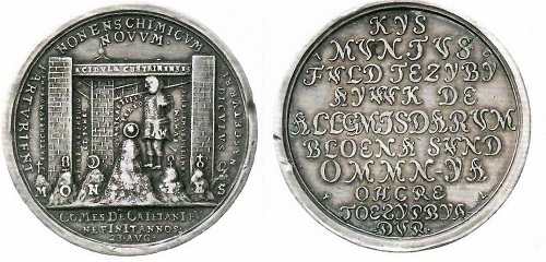 Blicken wir weiter zurück ins 17. Jahrhundert. Der römisch-deutsche Kaiser Leopold I. wird als großer Liebhaber alchemistischer Künste geschildert. Er fiel auf einen Augustinermönch namens Seyler herein, der behauptete, mit Hilfe wundertätiger Substanzen das begehrte Edelmetall erzeugen zu können. Seyler wurde zum "Hoff Chymicus" ernannt und zum Ritter von Rheinburg geschlagen, dazu zum böhmischen Obermünzmeister in der Hoffnung berufen, die dortigen Zinngruben für die Prägung von Silbermünzen nutzen zu können. Ein mit zahlreichen Herrscherbildern einschließlich Kaiser Leopold I. und seiner Gemahlin geschmücktes Medaillon mit einem Gewicht von sieben Kilogramm soll von Seyler zu Dreivierteln aus Silber durch Eintauchen in die geheimnisvolle Flüssigkeit vor den Augen des Kaisers in Gold verwandelt worden sein. Angeblich aus alchemistischem Gold bestehend, stammt auch eine Medaille mit einem Gewicht von 16,5 Dukaten, auf deren Rückseite eine lange lateinische Inschrift verkündet, sie sei ein "goldener Nachkomme von bleiernen Eltern." Die chemische Umwandlung des Saturns zur Sonne, also von Blei in Gold, habe am 31. Dezember 1716 in Innsbruck unter der Aufsicht des bayerischer Kurfürsten und Statthalters von Tirol Karl Philipp stattgefunden, und die "Münze" sei zum ewigen Andenken an dieses Ereignis dem Schloss Ambras und der Nachwelt gewidmet worden. Ganz bestimmt wird man weitere Beispiele für die Nutzung so genannter alchemistischer Metalle zur Herstellung von Münzen und Medaillen finden.