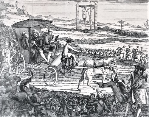 Am 23. August 1709 wurde der Goldmacher Cajetano im Beisein zahlreicher Neugieriger in Küstrin am Galgen vom Leben zum Tod befördert. Die zu diesem Spektakel geprägte Medaille enthält auf der Rückseite eine Inschrift, die keinen Sinn ergibt. In dem Buch von Cordula Wohlfahrt über die Medaillen von Christian Wermuth ist das Stück unter 09 040 vermerkt.