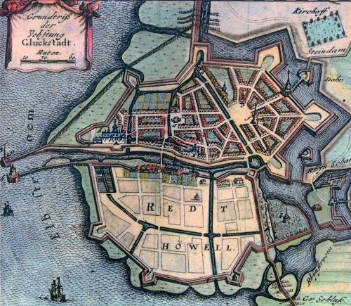 Der machtbewusste König stellte ihnen kostenlose Baugrundstücke zur Verfügung und gewährte Steuerfreiheiten. Aus Portugal vertriebene sephardische Juden sowie während des spanisch-niederländischen Krieges aus den Niederlanden geflohene Menschen reformierter Konfession, aber auch Katholiken, Menonniten und andere Gruppen siedelten sich in der Stadt an und machten sie zu einem blühenden Gemeinwesen. Nach dem Dreißigjährigen Krieg (1618-1648) verließen die meisten Exulanten Glückstadt, das sich in eine stark befestigte Garnison-, Residenz- und Verwaltungsstadt entwickelte. Bis heute ist das auf dem Reißbrett entworfene Bauensemble fast wie zur Gründungszeit erhalten.