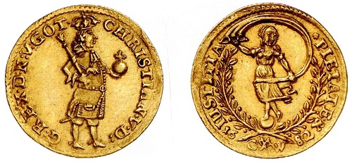 Die dänischen Könige traten in der Vergangenheit bisweilen durch originelle Münzen und Medaillen in Erscheinung. Zu nennen sind unter anderem die unter dänischer Herrschaft in Glückstadt geschlagenen Geldstücke als interessante feudaler Machtpolitik im frühen 17. Jahrhundert darstellen. Auf ihnen schwebt eine Fortuna auf einer geflügelten Kugel. Wind bläst in das Segel, das sie in Händen hält. Die antike Göttin war "zuständig" für alles, was mit Glück, Zufall und Schicksal zu tun hatte. In der antiken Kunst hat man sie häufig auf einer rollenden oder schwebenden Kugel oder einem Rad, mit dem Steuerruder oder einem Füllhorn dargestellt. Die unter dem dänischen König Christian IV. und seinen Nachfolgern geprägten Münzen aus Silber und Gold spielen auf den Namen der 1617 gegründeten Hafen- und Festungsstadt an der Unterelbe im heutigen Bundesland Schleswig-Holstein an. "Dat schall glücken und dat mutt glücken, und denn schall se ok Glückstadt heten!", wird der machthungrige König noch heute in plattdeutscher Sprache zitiert.