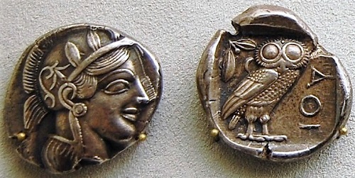 In der altgriechischen Welt prägten viele Potentaten und Städte eigenen Münzen. Überregionale Bedeutung erlangte die Tetradrachme, ein Vierdrachmenstück aus Silber mit einem Gewicht von etwa 16 bis 17 Gramm, was lange Zeit später etwa dem Gewicht eines halben Talers entspricht. Wegen der herausragenden Stellung von Athen fungierten die hier in großen Mengen gefertigten Prägungen mit dem Kopf Athena und der heiligen Eule als eine Art Leitmünze, nach der sich andere Prägungen richteten. Zwischen den Städten gab es einen Wettstreit um exquisite Bilder. Selbstbewusst signierten Stempelschneider bisweilen ihre Prägungen. Solche Namen sind beispielsweise auf Münzen von Syrakus mit dem Kopf der Quellennymphe Arethusa und Katane mit dem Kopf des Herkules und einem Vierergespann überliefert. Indem sich verschiedene Städte zu Bünden zusammenschlossen, einigten sie sich auf einen gemeinsamen Münzfuß, der das Bezahlen von Waren und Dienstleistungen erleichterte. Solche "Bundesmünzen" haben einheitliche Größen und Gewichte, unterscheiden sich aber in ihren Bildern und Aufschriften, die die konkrete Herkunft erkennen lassen. In wenigen Fällen läßt sich die Existenz von Münzverträgen nachweisen.