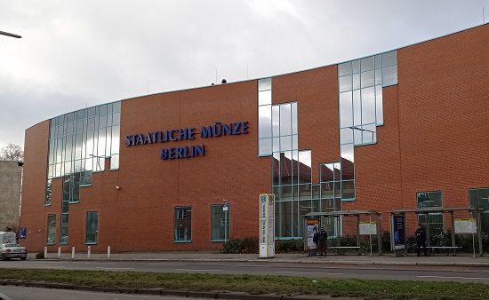 Die Staatliche Münze an der Ollenhauerstraße 97 im Berliner Bezirk Reinickendorf spielte eine Vorreiterrolle bei der Entwicklung eins Verfahrens zur Farbgestaltung von Münzen und Medaillen.