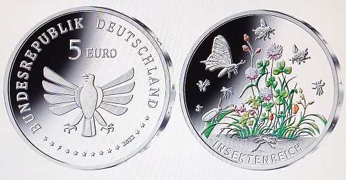 Die Erfahrungen mit den Gedenkmünzen Reichsverfassung von 1919 (2019), Münchhausen (2020), Sendung mit der Maus (2021) und 50 Jahre Kinderhilfswerk (2022) werden genutzt, um auch Medaillen aller Art etwa für Hochzeiten, Geburten, Schulanfang, Jubiläen und zu anderen Anlässen herzustellen. Dazu hält die Berliner Münze, die auf eine bald 800jährige Geschichte zurück blickt, eine reichhaltige Palette bereit und bietet auch individuelle Gravuren an. Die 2022 begonnene&xnbsp;Serie „Wunderwelt Insekten“zu fünf Euro &xnbsp;wird 2023 mit vier teilkolorierten Münzen fortgesetzt, und zwar mit den Themen „Siebenpunkt-Marienkäfer“, „Schwalbenschwanz“, „Rostrote Mauerbiene“ und „Gebänderte Prachtlibelle“. Bis 2024 sind neun teilkolorierte Münzen geplant, und sie werden nicht die einzigen sein, die mit Farbaufträgen versehen sind.
