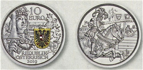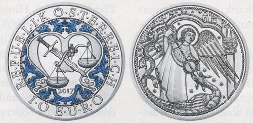 Auch Österreich folgte schon früh dem Trend und erfreute die Sammler unter anderem mit einer farbig gestalteten Zehn-Euro-Münze von 2017 mit dem Heiligen Michael als Drachentöter und 2019 mit einer Würdigung ritterlicher Tugenden. (Fotos/Repros: Caspar)