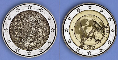 Die von Heikki Häiväoja, Pertti Mäkinen und Raimo Heino gestalteten Eurocent- und Euromünzen wurden ab 1999 geprägt und kommen mit dieser und späteren Jahreszahlen vor. Wenn wir unsere Geldbörsen systematisch durchsehen, besteht die Chance, auch mal eine finnische Euro- oder Centmünze zu entdecken. Auf den Stücken zu einem Euro ist als zweites Münzmotiv eine Seenlandschaft zu erkennen, über der zwei Schwäne fliegen. Damit gibt sich Finnland als dem Land der tausend Seen zu erkennen und wirbt für seine Naturschönheiten und für die selbst auferlegte Verpflichtung, für ihren Erhalt zu sorgen. Schon 1995 hatte Finnland einen fliegenden Schwan auf einer Sondermünze anlässlich seines Beitritts zur Europäischen Union abgebildet, und wenn man ältere Münzen anschaut, findet man auf ihnen immer wieder Vögel einzeln und in Schwärmen.