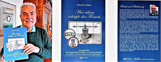 Münzen und Medaillen bieten Sammlern und Historikern große Möglichkeiten, um aus ihnen Freude und Belehrung empfangen, wie man in der Barockzeit sagte. Um sich nicht zu verzetteln und auch die eigenen Mittel zielgerichtet einzusetzen, spezialisieren sich Sammler auf bestimmte Themen, Zeiten, Regionen und Personen. Für diese und weitere Motive hält der Münzhandel reichhaltige Angebote bereit, und es gibt auch eine reichhaltige Literatur, um sich über seinen Besitz zu orientieren. Ein für Kunden und Freunde des Verlags Winfried Frühwald Salzburg bestimmtes, darüber hinaus aber auch für weitere Leserkreise gut geeignetes Buch mit dem einer Medaille aus dem Jahr 1800 übernommenen Titel "Aus allem schöpfe dir Freuden" versammelt Beiträge, die der Berliner Historiker, Journalist, Buchautor sowie Münz- und Medaillensammler Helmut Caspar in den vergangenen drei Jahrzehnten in der Zeitschrift "Money trend" und an anderer Stelle veröffentlicht hat.