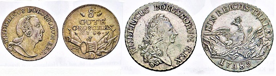 Auch Münzen und Medaillen kommen zwei- und mehrsprachig vor. Die Kombination von lateinischen Inschriften mit solchen in der Landessprache sollte denjenigen helfen, die "nur" diese verstehen, nicht aber die über Jahrhunderte in Kirchen-, Gelehrten- und Diplomatenkreisen gepflegte lateinische Sprache. Münzen des preußischen Königs Friedrichs II., des Großen, kombinieren dessen Titel FRIDERICUS BORUSSORUM REX mit den Wertangaben 8 GUTE GROSCHEN beziehungsweise EIN REICHSTHALER. Im Laufe des 19. Jahrhunderts ist man in Deutschland und anderen Ländern zu Aufschriften nur noch in der Landessprache übergegangen. Ein treffliches Beispiel dafür, dass unter Kaiser Wilhelm II. die lateinische mit der deutschen Sprache kombiniert wurde, sind die Silbermünzen, die für die Kolonie Deutsch-Ostafrika mit dem behelmten Brustbild von GUILELMUS II IMPERATOR mit der deutschen Angabe über die Deutsch-Ostafrikanische Gesellschaft als Herausgeberin und der Wertangabe ZWEI RUPIEN geprägt wurden. Wer sucht, der findet weitere Beispiele für die Verquickung von Amts- und Zweitsprachen auf geprägtem Metall. Der Münzhandel hält zahlreiche Beispiele bereit, man muss sie nur noch finden. Wie wäre es, wenn Rainer Geike seinem Geldscheinbuch ein weiteres folgen lässt, das diesen Aspekt der Gewährung und des Verbots von Landessprachen auf Münzen und Medaillen näher beleuchtet?