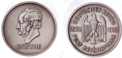 Die Weimarer Republik ehrte 1932 den Dichter zu seinem einhundertsten Todestag mit Gedenkmünzen zu drei und fünf Mark.