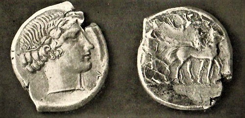 Goethe konnte sich bei seinem Besuch in Italien an antiken Münzen, die er "Frühling von Blüten und Früchten der Kunst" nannte, nicht satt sehen, und befand bei ihrem Anblick "Sizilien und Neugriechenland lässt mich nun wieder ein frisches Leben hoffen." Hier eine Tetradrachme aus Leontinoi mit Pferdegespann und Löwenkopf.